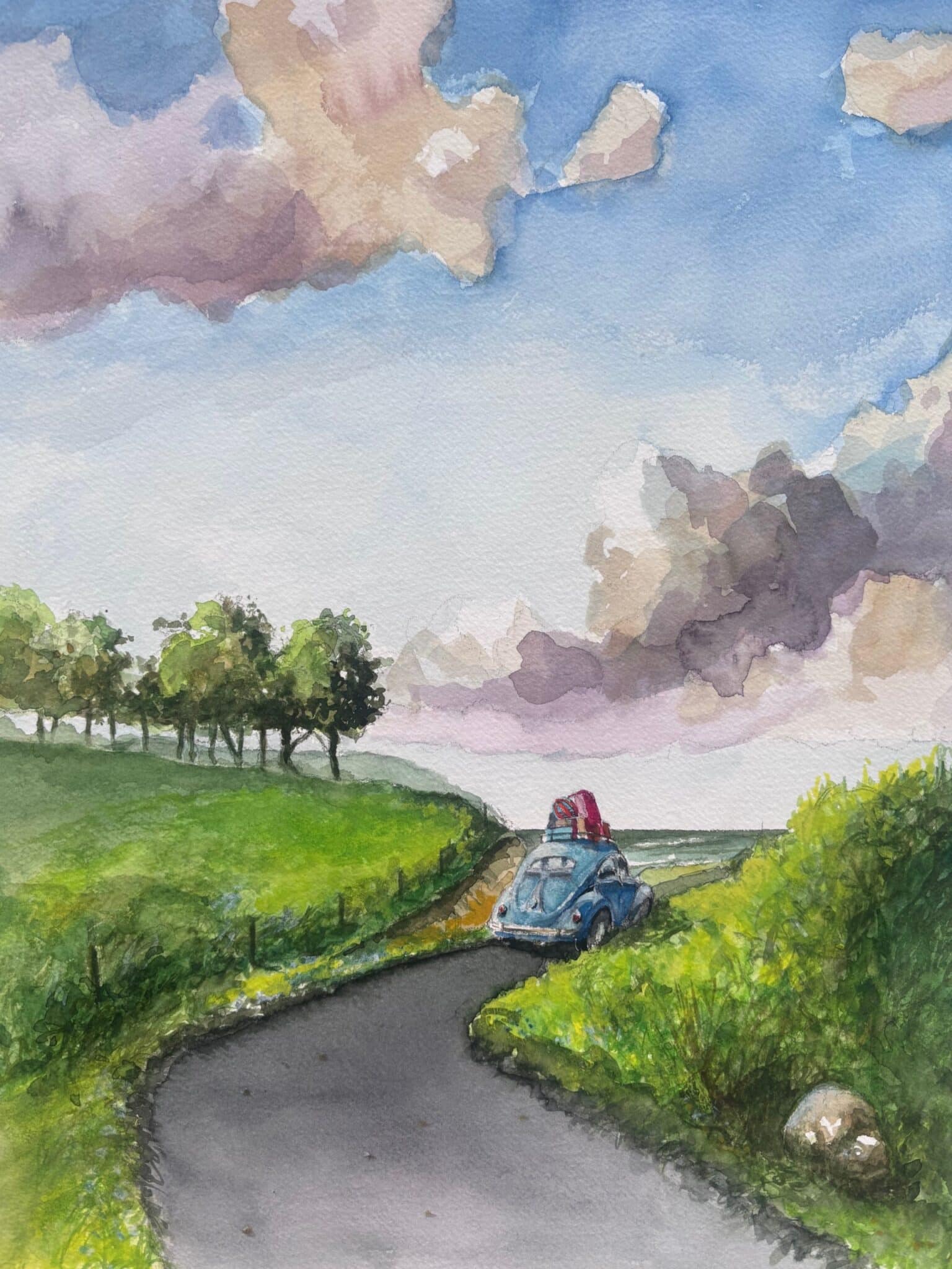 Akvarellerne bliver solgt plano, altså uden ramme, der kan tilkøbes flotte indramninger, vi har gode aftaler med et kyndigt rammeværksted, som udfører arbejde i meget høj kvalitet